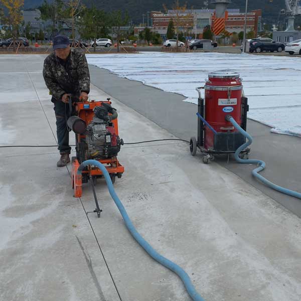 건식줄눈컷팅은 물을 사용하지 않아 분진이 발생하지 않는 최신 공법으로 구조물의 온도변화에 따른 팽창/수축/부등침하/진동 등에 의해 콘크리트에 균열의 발생이 예상되는 위치에 줄눈컷팅 작업/신축줄눈 작업.